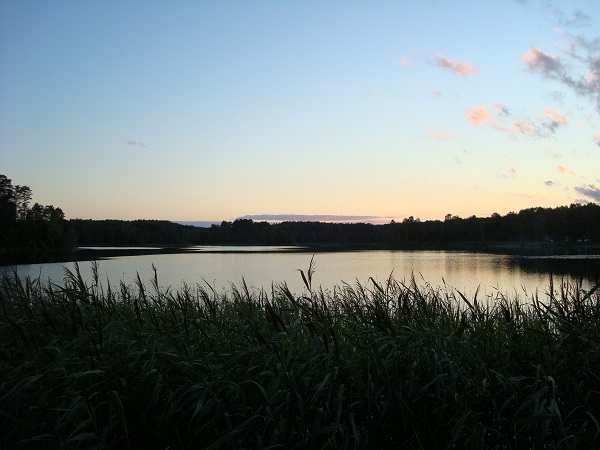 Вид на закат с мыса, где когда-то стояла пристань «Гриб». Межутоки, июль 2007 г.