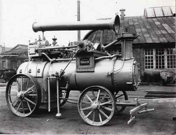 Локомобиль в походном положении, труба сложена. Фото начала ХХ века