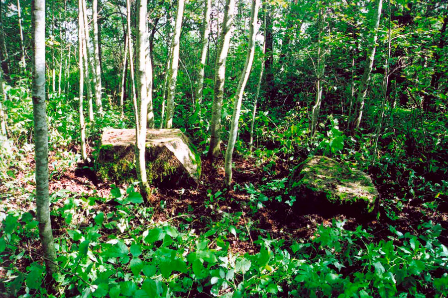 Расколотый гранитный постамент статуи на островке озера Немега. Межутоки, июль 2007 г.