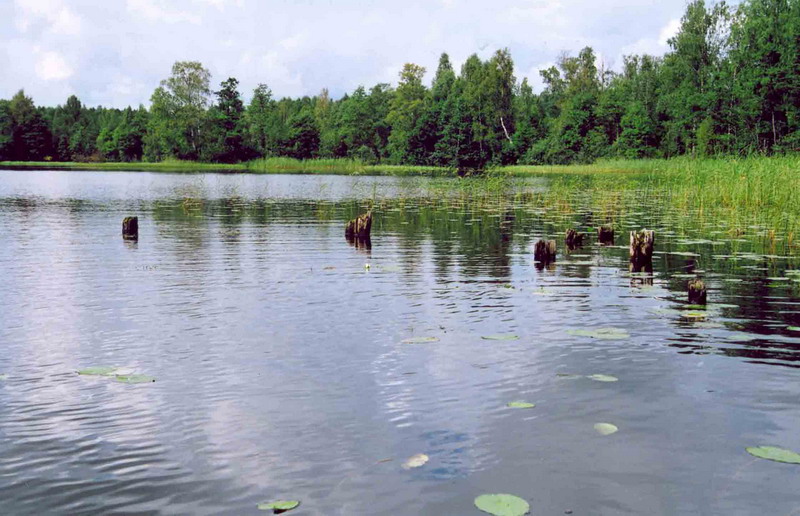 Почерневшие осиновые сваи, торчащие из воды на месте бывшей купальни. Наши дни.