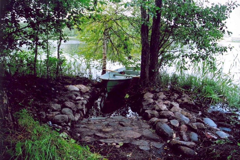 Сейчас, спустя восемнадцать лет, от этой аллеи на мыс не осталось и следа. Природа вновь показала, кто здесь хозяин. А вот пристань на острове была выложена из природных необработанных камней-булыжников, привезённых с берега на лодке, поскольку на острове камни не встречаются. Зато их сколько угодно на берегу. На Валдае по опушкам леса вокруг любого поля лежат кучи из таких камней. Это крестьяне сносили с полей попадавшиеся им во время вспашки земли камни, принесённые когда-то с севера ледником, и которые земля медленно, но настойчиво выдавливает на поверхность. Из таких камней, например, в Межутоках сложена длинная изгородь вдоль дороги, идущей к главному усадебному дому от моста через протоку между озерами Островито и Немегой.