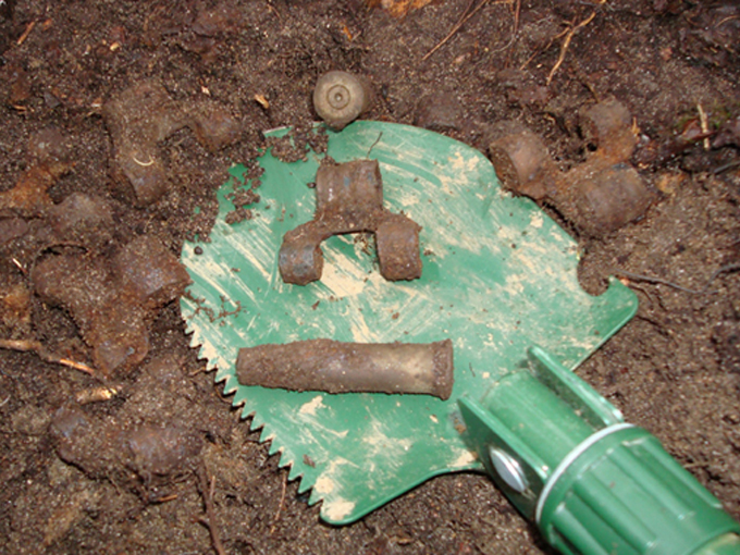Звенья пулемётной ленты и гильза патрона пулемёта «Максим». Межутоки, ноябрь 2008 г.